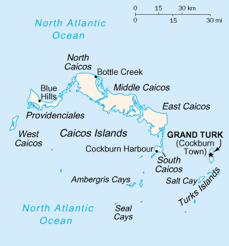 The islands form a British Overseas Territory and have rapidly gained popularity as a beach destination. There are roughly 30,000 inhabitants on the islands and they welcome about 450,000 arrivals by air and 650,000 cruise ship passengers each year. The archipelago consists of two island groups, the Turks islands and the Caicos islands, of which Grand Turk and Providenciales are the two main islands. Daylight savings time is observed and they are in the Eastern Time Zone. These islands are in the Atlantic Ocean and not the Caribbean Sea, although they are included in the Caribbean region. The nearest other islands are the southern parts of the Bahamas, about 100 km east and northwest. Haiti is a similar distance due south. At considerably longer distances, Cuba is southwest and Florida northwest.