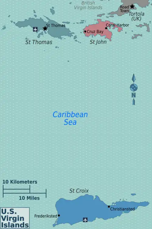 - Virgin Islands Coral Reef National Monument - includes federal submerged lands within the 3 mile belt off of the island of St. John