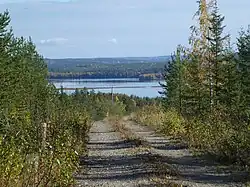 There is a lean-to shelter 4 km (🌍 Sorveuskoski) and a campfire site another 2 km forward, by Ylimmäisenjärvi (shed, table, benches, beach). For the 🌍 Kangas-Valkeinen shelter (lean-to shelter, table and benches, beach), turn north when off the Ylimmäisenjärvi/Raittilampi isthmus. Return to the trail to the west, going south of Kaivos-Valkeinen. There is another lean-to shelter (🌍 Ruukinkoski) 6.5 km after Sorveuskoski by the trail. The next shelter, at Hepopuro after 6 km (still maintained?), is a kota, a Finnish version of a goahti. There is a campfire site 1 km farther, on the shore of Kiteenjärvi, and a wilderness hut 1 km farther along the lake shore: 🌍 UKK-tupa, with sauna, well and beach. The trail turns west, again north, reaches a road 1.8 km after the hut and follows it westward for 300 m, then turns north and leads via Käkipuronkangas to Porttilouhi 5.5 km from the hut.