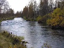 The next leg is 15 km, to 🌍 Jussinkämppä, then 8 km to 🌍 Ansakämppä, 7 km to 🌍 Oulanka Visitor Centre (☏ +358 20-639-6850) and 3 km more to a commercial campsite (🌍 Oulangan leirintäalue ☏ +358 44-740-0001; also cottages, showers and a kiosk). The next legs are 7 km to 🌍 Taivalköngäs (with a 9-km connection to the 🌍 Ristikallio trailhead; wilderness hut also at 🌍 Ristikallio), 3 km to 🌍 Savilampi (also with a connection to a trailhead, 1.5 km), and then 14.5 km to the Hautajärvi trail gate and its information point. The 🌍 Rytiniva shelter is 0.5 km before the Karhunkierros gate and the highway. The village 🌍 Hautajärvi is to the south; the UKK trail continues across the road 500 m northward.