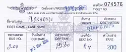 Ubon is less than 100 km from the Lao border at Chong Mek/Pakse. A regular 'international' bus service now operates twice daily direct from Ubon bus station (near the "Big C" shopping complex) to Pakse in Laos, and caters for travelers who wish to obtain a Lao visa on arrival (it waits for all passengers to complete immigration and visa formalities before continuing to Pakse). The fare is 200 baht if purchasing tickets to Pakse at Ubon bus terminal. Agents selling tickets in Pakse charge 90,000 kip for the other direction (about 50% more), though this includes pickup from downtown Pakse. The price may be cheaper if you purchase directly at the bus station on Pakse's eastern outskirts.