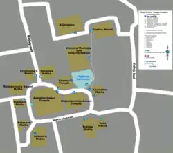 20th century additions to the area are the Gita Mandira and the Rajangana, where cultural programmes and discourses held, a short walk away. The Ratha Beedi is also a shopping street.