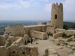 Fortified ruins contain a small cylindrical tower, a main tower with a rectangular base that dominates the whole, the courtyard and the church of Santa Maria dels Angels. Two lines of wall have traces of Arabic origin and subsequent interventions, remains of two towers or bastions (of Arabic origin) where in one of them, it was surprisingly found in an excavation, a bronze figure representing Christ the King. This piece is unique in all the Ebro region and province of Tarragona and has been dated to the 13th century by comparison with others of that era.