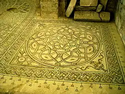 The most important discovery on the site was the mosaic floor of the Church of St Stephen. It was made in 785 (discovered after 1986). The perfectly preserved mosaic floor is the largest one in Jordan. On the central panel hunting and fishing scenes are depicted while another panel illustrates the most important cities of the region (including Kastron Mefaa, Philadelphia, Madaba, Esbounta, Belemounta, Areopolis, Charac Moaba, Jerusalem, Nablus, Caesarea and Gaza). The frame of the mosaic is especially decorative. Six mosaic masters signed the work: Staurachios from Esbus, Euremios, Elias, Constantinus, Germanus and Abdela. It overlays another, damaged, mosaic floor of the earlier (587) "Church of Bishop Sergius." Another four churches were excavated nearby with traces of mosaic decoration.