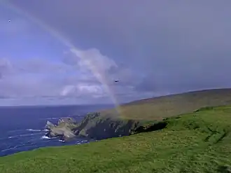 Natural hazards are the main risk, especially bad weather close to cliff edges. The bonxies (great skuas) will viciously dive-bomb anyone who approaches their nests.