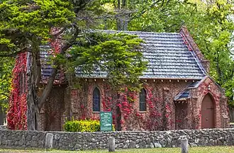 - 🌍 Gostwyck Chapel (All Saints Anglican Church), Gostwyck Road (11.5 km east of Uralla via Salisbury Street south-eastbound, turn left-east onto Gostwyck Road). Not open to the public, can only be viewed from the roadside. Best seen in autumn/fall. Gostwyck Chapel was built 1921 in memory of Major Clive Collingwood Dangar who died in World War 1. The tree-lined avenue was planted by a worker brought over from England specifically for the purpose. The church and the woolshed can only be observed from the road. Gostwyck Chapel is on private property, a working enterprise, and visitors are asked to carefully respect the privacy of Gostwyck Station, its owners and employees. No commercial photography is permitted.
