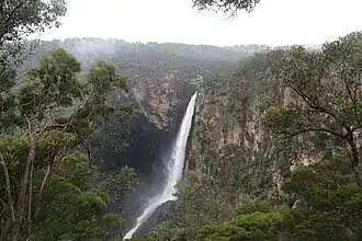 - 🌍 Dangars Falls (Oxley Wild Rivers National Park), Dangars Falls Road (36.5 km via New England Highway northbound, through Saumarez, turn right onto Platform Road, at Kellys Plains cross the railway line and continue straight ahead onto Heathersleigh Road - not Platform Road - then turn left onto Knobs Road, at the four-way intersection turn right onto Dangarsleigh Road, at the Dangarsleigh War Memorial on the take the left onto Dangars Falls Road, continue ahead to the picnic area and campground), ☏ +61 2 6738 9100, npws.nea@environment.nsw.gov.au. 7AM-7PM. 183 m high ephemeral waterfall (only flows after rain). Nearby picnic area with toilets, picnic tables, barbecue facilities, bring your own water, take your litter out with you. McDirty's Walking Track - 6km, 2-3 hours, Grade 3. Free entry.