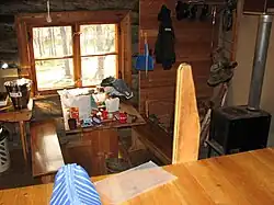 - Use the wood stoves for heating (and for melting snow for water, if needed). Take wood indoors instead of what you use and chop and make tinder as needed, for the next guests to use (but don't leave scrap paper).