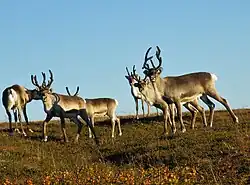 Large mammals in the park include reindeer, bear (Ursus arctos), wolverine (Gulo gulo), wolf (Canis lupus) and lynx (Lynx lynx). The large predators are seldom seen by hikers, but reindeer, hare, moose and fox are often spotted.