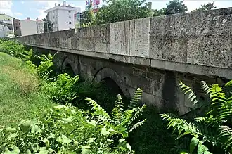 - 🌍 Long Bridge starts from Gazi Cd in town and crosses the Ergene valley, with 172 arches spanning 1239 m. It was built 1426-1443 at the second attempt at the behest of Murad II to carry the highway to Edirne. The main road now bypasses town to the east but vehicles (max 3 tonne) still use the bridge, which just about has room to pass. In 1971 it was widened by 1.5 m and lost 2 arches, 100 m length, much of its authenticity and any chance of a UNESCO listing. Even so, the pavements are too narrow for comfort, so walk facing the oncoming traffic. The first km from town is more like a walled causeway over floodprone fields. The three main arches over the river are near the northern end, where a factory doesn't improve the view, and the river is polluted. You get a better view from the track between factory and bridge, to see the carvings on the parapets.
