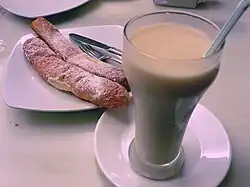 - Orxata (horchata). A drink made from tigernut (Valencian: xufa, Spanish: chufa), which was first created during the Moorish period. Being cold and sweet, it is especially popular during the summer months, and can be ordered in orxateries or horchaterias as well as in most cafés and bars. When ordering an orxata, you will most probably be asked whether you would like to have a fartón, a small pastry for being dipped in orxata, as well.