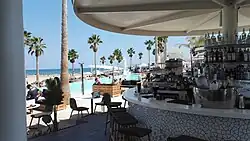 - 🌍 Marina Beach Club, Carrer Marina Real Juan Carlos I, s/n, ☏ +34 961 150 007, eventos@marinabeachclub.com. Daily 11:00-03:30. Beach club and restaurant by day, this is a popular music hotspot at night with live performances and visiting international DJs.