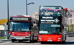 🌍 Valencia Bus Turistic, Plaça de la Reina, 10, ☏ +34 699 982 514, valenciabusturistic@valenciabusturistic.com. Daily 09:30-20:00 (office). In cooperation with the city's official tourism office Valencia Bus Turistic operates a hop-on, hop-off bus service which covers two routes: the Historic Route, which covers most of the centre of the city (schedule available here), and the Maritime Route, which visits the Royal Marina, the City of Arts and Sciences, and the beaches (schedule available here). Each route includes a guided commentary in multiple languages, and the two routes intersect at three locations; it is permitted to combine both routes, if desired. Tickets can be purchased at any bus stop, tourist information centre, and in many hotels. 24/48 hour tickets: €17/19 (adults), €10/11 (children 7-16), free (children under 7); 12% discount with the Valencia Tourist Card (available at tourist information centres).