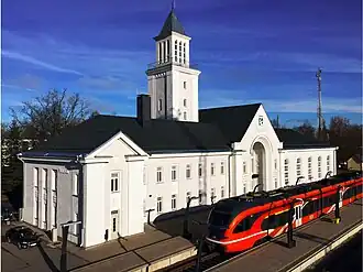 - 🌍 Railway station and bus station (Valga raudteejaam) (about 1 km southeast of the centre). Daily 06–20:00; Ticket desk: M–F 09:00–18:00, off 13:00–14:00. Built in 1949, the building has a ripped rectangular tower, which is of architectural interest and the most distinct in Estonia. The inside is reconstructed and accessible with shops, toilets, and a ticket desk.