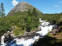 Valldal is surrounded by attractive alpine mountains and steep, green hills. A wild river runs through the valley creating several nice waterfalls, including Holsfossen (10 kilometres upstream), Gudbrandsjuvet (15 km upstream) and Skjerdsura (16 km upstream) - these waterfalls are next to the road.