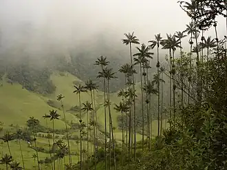 The area was designated a national natural area by the Colombian government in 1985 in response to the imminent threat of extinction of the Ceroxylon quindiuense, the Quindío wax palm. The palms were brought to the verge of extinction in part owing to their utility in making wax candles and building materials for farmers, but most of all because they were traditionally cut down annually for fronds on Palm Sunday. The park remains to this day one of the few places in the world that you can find these immense trees which, while quite rare, are no longer under imminent threat. You can find some other ones in botanical gardens, such as the San Francisco Botanical Garden in San Francisco, California.