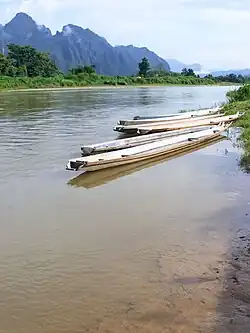 Vang Vieng (ວັງວຽງ), sometimes spelled Vang Viang, is a riverside town in Central Laos. It is the adventure capital of Laos, with a river flowing through the spectacularly wild karst formations, laid-back countryside and many caves. Many outdoor tours are available.