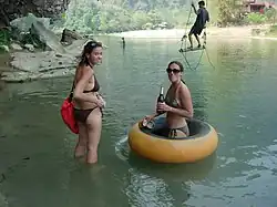 | Note: Around one tourist dies every month while jumping or tubing. Several more get severe injuries every month, as there are many sharp rocks not visible under the water in many places along the river. Do not jump if you are drunk. It's difficult to always predict where you will land in the water while jumping and there are almost always rocks nearby! | |