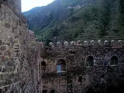 One of the biggest fortresses in Georgia the elongated castle is more than 150 metres long and more than 30 metres wide. Inside the castle is a five-sided watchtower, a square keep, the 10th century St. George Church and the remains on the eastern wall side of two tunnels go down to the river; one was used for water delivery, the other – as a communication system.