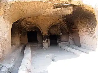 The cave monastery grew into a complex stretching along the mountain side for as long as 800 m, to the depth of 50 metres housing perhaps 2,000 monks, with over 13 churches, 25 wine cellars, baths, libraries and numerous dwellings connected by tunnels and stairs. During an enemy attack the complex could host up to 20,000 people.