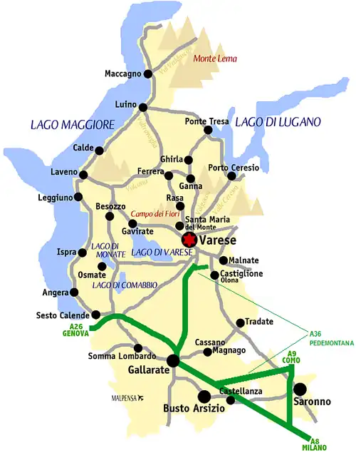 The province is also crossed by the Novara-Pino line, the Mendrisio-Varese line, and the Cadenazzo-Malpensa Airport line.