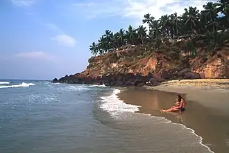 - Varkala beach (also known as Papanasam beach). Varkala beach is as beautiful as, if not more beautiful than Kovalam beach. Laterite cliffs drop sharply into the sea, with a small strip of sandy beach at the base. The beach is less frequented by the tourist crowd and is an ideal location if you want a quiet getaway.