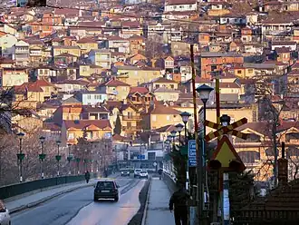 Veles (Macedonian: Велес) is a city in the Povardarie region of North Macedonia on both sides of the Vardar, the country's most important river. The city is home to over 43,000 residents, making it the sixth-largest in the country. The larger Municipality of Veles, which includes 27 villages, has a total population of over 55,000. The Macedonian capital, Skopje, is northwest of the city.
