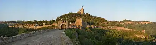 If in Veliko Tarnovo, make sure to visit the castle of the old Bulgarian capital - Tsarevets. The medieval stronghold located on a hill of the same name, served as the Second Bulgarian Empire's primary fortress and strongest bulwark from 1185 to 1393. Housing the royal and the patriarchal palaces, it is a popular tourist attraction. The castle itself offers spectacular views of the town, surrounding hillsides, and the river below. The Tower of Baldwyn (also Baldwin Tower) within the complex allows for tourists to climb to the top and offers both spectacular views and an insight into how medieval towers were designed and how they functioned.