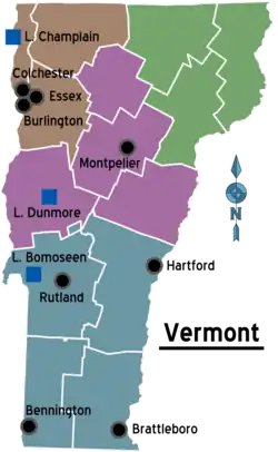 | Northwest Vermont (Chittenden, Franklin, Grand Isle County) Includes the Vermont part of the Champlain Valley. Home of Burlington, the University of Vermont, and many dairy farms. |