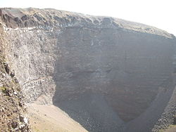 Mount Vesuvius (Italian: Monte Vesuvio) is a volcanic mountain in the Campania region of Italy, overshadowing the Bay of Naples.