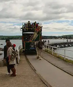 If you get the tram, it takes you further than just across the causeway. It travels around 200 m on the island, as far as the cafe and visitor's centre complex, so it does save you a substantial walk, although it doesn't really save you any time.