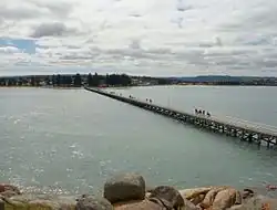 Victor Harbor is a large coastal town of 15,000 people (2018), 80 km south of Adelaide in South Australia. It is a very popular tourist destination, with the area's population greatly expanded during the summer holidays, usually by Adelaide locals looking to escape the summer heat. It is a popular destination with South Australian high school graduates for their end of year celebrations, known colloquially as "schoolies".