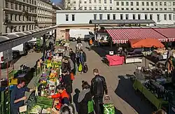 - 🌍 Karmelitermarkt (Markt im Werd), Im Werd / Haidgasse / Leopoldsgasse / Krummbaumgasse (U2 Taborstraße). Market M-F 06:00-19:30, Sa 06:00-17:00; dining M-Sa 06:00-23:00. Closed Su and public holidays. This traditional fruits and vegetable market is the heart of the trendy, hip Karmeliterviertel neighbourhood. There are still some classic shops (including a horsemeat-butcher), but most of the stalls now house trendy restaurants and delicatessens. A fleamarket is here every Wednesday, and a farmers' market every Saturday.