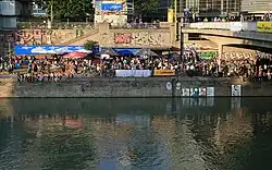 - Left Bank of the Donaukanal, Riverbank between Augartenbrücke and Franzensbrücke (Schottenring and Schwedenplatz metro stations). During the warm season, the riverbank gets incredibly lively in the evenings. Find a wide range of bars with artificial beaches serving cocktails, among them the very trendy Adria or Tel Aviv Beach. Or get some drinks from a supermarket and enjoy the party on low budget. Sit next to the river and impressive graffiti and enjoy a drink or two in the evening sun.