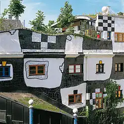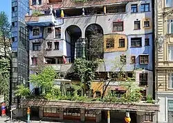 - 🌍 Hundertwasserhaus, Kegelgasse 36-38 (5–10 minutes east of Wien Mitte U-Bahn stop, tram N stop Hetzgasse), ☏ +43 1 4701212. Interesting apartment/office complex, designed by the Austrian architect/painter Hundertwasser. Remember that most of it is still in use as housing or offices and respect the residents' privacy. The nearby KunstHausWien (see above) is a Hundertwasser building you can freely explore.
