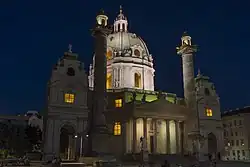 - 🌍 Karlskirche (St Charles' Church), Kreuzherrengasse 2, kontakt@karlskirche.at. M-Sa 09:00-12:30, 13:00-18:00; Su and holidays 12:00-17:45. Largest Baroque church north of the Alps, designed by the famous architect Bernhard Fischer von Erlach. Frescos done by Michael Rottmayr and paintings from the Italian Baroque painters Sebastiano Ricci and Giuseppe Antonio Pellegrini, and the Austrian painter Daniel Gran. €8 (adults), €4 (students), free (children under 10).