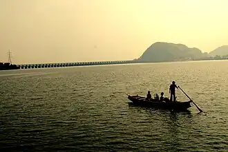 Vijayawada is the second largest city in Andhra Pradesh, India. It is on the banks of the Krishna River, bounded by the Indrakeeladri Hills on the west and the Budameru stream on the north. Its name literally translates to "The Place of Victory". It is also known as Bezawada.