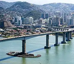 The municipality of Vitória is made of an archipelago with 34 islands and a continental area. Its total area is 104 km², including the main island, the continental area, the coastal islands and the oceanic islands of Trindade and Martin Vaz. It used to have more than 50 islands, but now many of them have been incorporated, by landfills, to the main island.