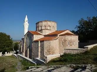 - 🌍 Gazi Süleyman Paşa Mosque (Little Hagia Sophia, Küçük Ayasofya Kilisesi). 24 hrs. A Byzantine redbrick church, built circa 550 AD in the time of Justinian I, on a basilica plan. "Hagia Sophia" (Ἁγία Σοφία) is Greek for "Holy Wisdom" and there are some 30 churches of that name, with the best known in Istanbul. The Turkish churches later became mosques and the Vize mosque is still in use. The interior is plain, with no minbar (pulpit); somewhere beneath it lies a Temple of Apollo. The building was restored in 2007 and is supposedly open 24 hours, though you may have to ask around for the key, or peek in after prayer times. Free.
