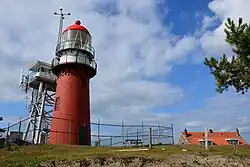 - 🌍 Vuurduin, Vuurboetsduin 3. Without a doubt the landmark of Vlieland. Vuurduin (meaning fire-dune) was constructed in 1876 as the lower lighthouse of IJmuiden. Its three top-most floors were however deconstructed and rebuilt on Vlieland, functioning as the island's lighthouse since. Due to its location atop the Vuurboetsduin, one of the Netherlands' highest dunes, the lighthouse itself only measures in at 16.8 metres (55 ft). The lighthouse, originally designed by Quirinus Harder, who pioneered cast iron lighthouses in the Netherlands, is entirely automated these days, and is open to visitors under supervision of a lighthouse keeper during irregular times that are announced on the website of VVV Vlieland (look for 'Bezichtinging Vuurtoren').