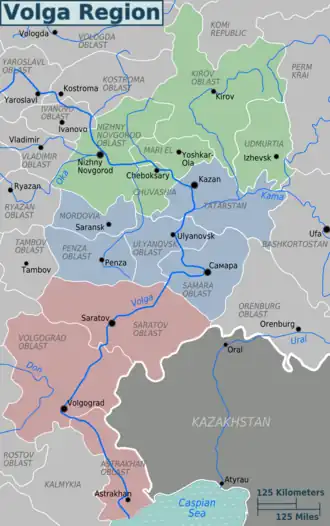 The Volga Region, (Russian: Поволжье pah-VOHL'-zh'yeh) is the large region of Russia in the Volga Basin, centered along the Volga River.