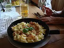 - KÀsknöpfle or (KÀse-)SpÀtzle: noodles of flour and eggs with cheese and onion, very heavy but delicious, served with golden-brown onion rings