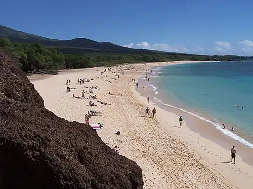 - Makena Beach, South Makena Rd (in Makena State Park 1 mi S of the Maui Prince Hotel, there are two parking lots on the W side of the road). A beautiful stretch of beach south of Wailea that is good for swimming. There are two beaches -- Big Beach, which is the main one, and Little Beach, which is over a hill at the north end of Big Beach. Facilities are limited with just pit toilets and a few picnic tables. It's a good idea to bring your own food if you want to eat as the concession trailer is very expensive for what you get.