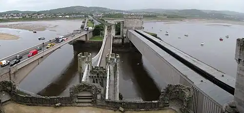 - 🌍 Conwy bridges. Suspension bridge built by Thomas Telford and tubular railway bridge built by Robert Stephenson.