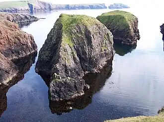 - The Steep Islands are a well-named pair just offshore south of Culswick, typical of this rugged coastline.