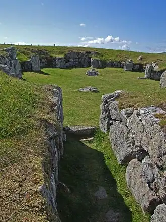 - 🌍 Stanydale Temple (southwest of Bixter). 24 hr. Large walled enclosure, once timber-roofed, dating to 2000-2500 BC. An early investigator dubbed it a "temple" as it resembles early Mediterranean temples. Whether it was primarily ritual or domestic or defensive is still debated (and whether its occupants would make that distinction), but it was obviously an important building. Not a tree for miles as you follow the lane (a lane? more like a tarmac bootlace) so the timbers were driftwood from Scandinavia. Don't take the side-lane to Staneydale, but continue by the little loch and watch for the brown signpost. An indistinct muddy path leads southwest for a mile to the site. Free.