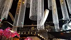 - 🌍 Morimoto Asia, ☏ +1 407-939-6686. Su-Th 11:30AM-midnight, F Sa 11:30AM-1AM. Iron Chef Masaharu Morimoto has opened this enormous eatery to bring a pan-Asian flavor to Disney Springs. Dressed as the former Disney Springs Bottling Company, the restaurant features a gleaming metal and crystal interior with numerous dining areas and a bar that stretches across the building's two stories. Morimoto's specialty has always been Japanese fusion, but here he brings in flavors from throughout East Asia, as well as Western-inspired dishes with signature Asian touches. An outside walk-up window, Street Food, serves ramen, sushi, and more at a cheaper price. $15-35 per adult; Dining Plan requires two credits.