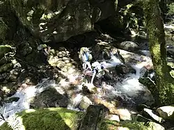 The rivers along this route are a sanctuary area for the rare Whio or Blue Duck. They are a swift water bird that has been heavily predated by imported stoats and weasels. There is a large trapping program with traps along the rivers. Do not open them as they contain both poison and a dangerous trap. Since the trapping program began, the number of Whio have increased.
