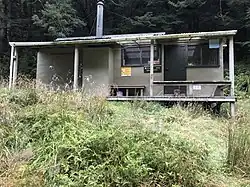This is the most challenging section of the track, with a steep climb up and down from Little Wanganui Saddle at 1,087 m, along with old and new landslips diverting the route and tree falls impeding progress. Just before the saddle you pass π Stag Hut Shelter, a 2-bunk emergency shelter with water and a toilet. On the far side of the saddle, 150 m off the track, is Wanganui Bivvy, another 2-bunk emergency shelter with water and a toilet. π Belltown Manunui Hut has 10 bunks (standard), heating, water, and a toilet.