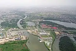The Warri town and port of Delta state lies along the Warri River in the western Niger River 30 miles (48 kilometres) upstream from the port of Forcados on the Bight of Benin.